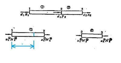 ,用這連個離散單元的組合來逼近連續體直桿,設單元編號