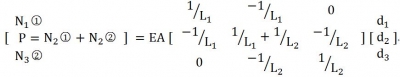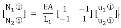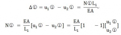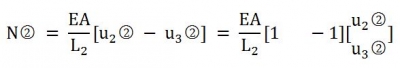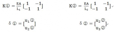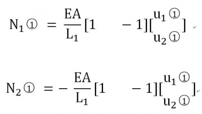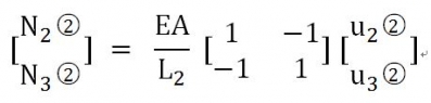 ,結點編號1,2,3,單元上軸向位移與軸向內力如上圖 u表示結點位移 N表示結點內力。