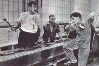 夏爾洛是這個(gè)時(shí)代的悲劇代表人物:他在不斷加快的傳送帶式的作業(yè)線上被弄得精神失常、被卷入巨大的機(jī)器齒輪中、被出了毛病的吃飯機(jī)器在他悲戚驚恐的臉上不住扇打……。這些影像無不反映了機(jī)器時(shí)代所帶來的恐懼與打擊。最后夏爾洛失業(yè)了,他加入了找工作的巨大洪流之中;甚至無意中領(lǐng)導(dǎo)了示威運(yùn)動(dòng)的群眾,然而最后仍是改變不了他可憐的