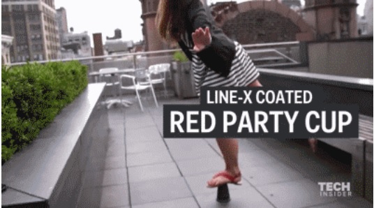 該公司的研究人員稱,LINE-X噴涂在物體上幾秒鐘就能干燥,形成一層高密度、彈性好的涂層,能讓被噴涂的物件表面強韌度增加300%,保護性遠遠優于市面上其他的涂料,任何物件噴上它,都能瞬間變成“鋼鐵俠”。