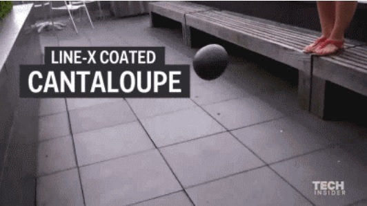 試試哈密瓜,一掉地上就遍地開花,涂上LINE-X后就能當皮球玩。