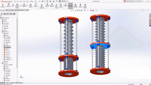 要行程調節很麻煩的,方法就是裝好裝配體后,在裝配體里編輯碟彈,編輯草圖,把碟彈的“厚度”方向(圖里的 ...