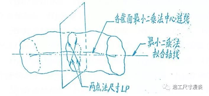 兩點(diǎn)法尺寸本身是默認(rèn)的,意味著無論你見或不見,它都在那里。其物理含義是目標(biāo)FOS上任意垂直于最小二乘法擬合軸線的橫截面上,任意穿過該截面最小二乘法擬合中心的兩點(diǎn)測量尺寸都應(yīng)在給定公差范圍內(nèi)。