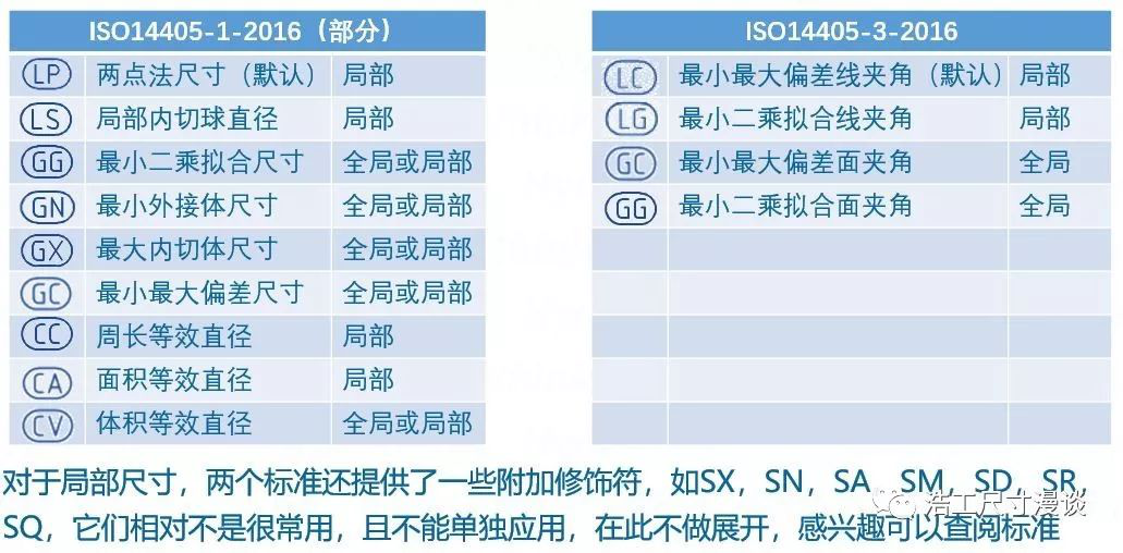 放心,ISO14405中很貼心地給大家準(zhǔn)備了一系列的修飾符(可以理解為附加說明),用來細(xì)化每個(gè)正負(fù)公差的具體含義: