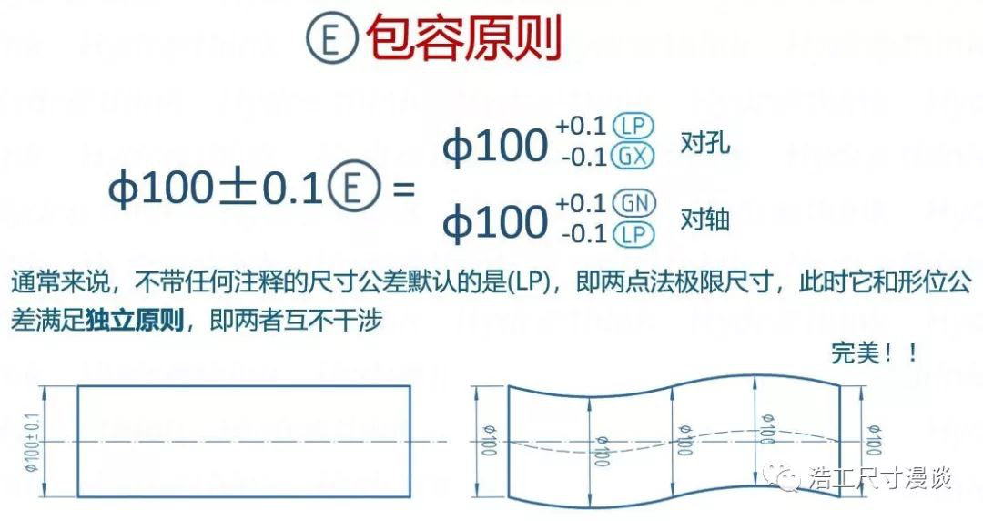 包容原則在GN和GX的基礎(chǔ)上增加了LP的限制,進(jìn)一步增強(qiáng)了對(duì)形狀的控制,同時(shí)保證了最小材料,因而同樣適用于過渡和過盈配合。