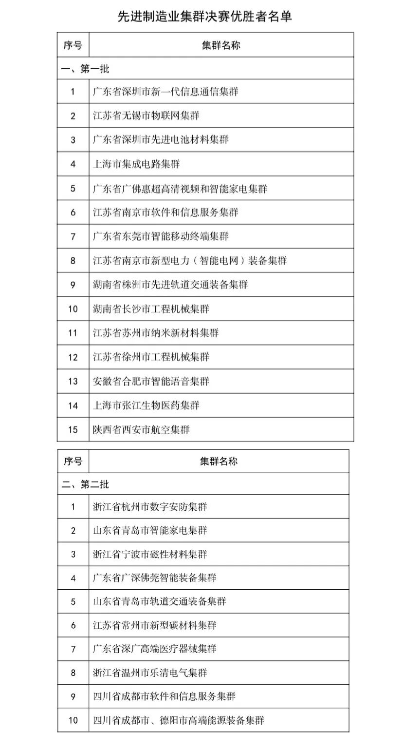 從2019年啟動先進制造業集群培育工作以來,工信部通過搭建集群間相互比拼的“賽場”,先后經過兩輪競賽,最終確定了25個重點支持集群。