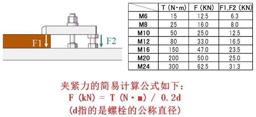 松葉式夾緊器夾緊時的扭矩和夾緊力的關系,可以通過螺栓的推進力進行計算。
