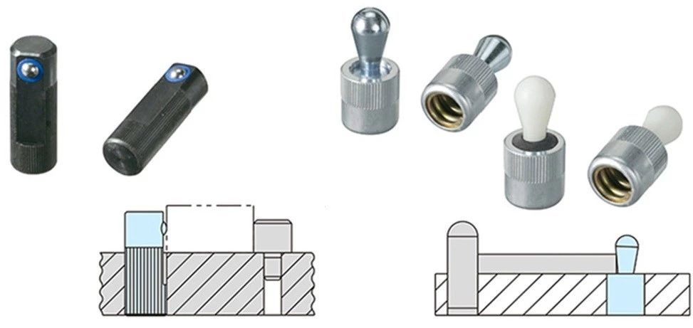 一般在工件毛坯面定位時,使用螺栓型可調(diào)節(jié)的定位器、在工件加工面定位時,使用固定型(工件接觸面經(jīng)過研磨)定位器。