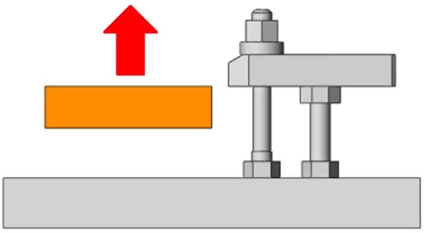本來,從上方夾緊工件這種夾緊方式是精度最穩(wěn)定的、工件的加工負荷也是最小的。但是工件上方需要加工,或者從工件上方夾緊并不是很合適等的各種情況,導致不能從工件上方進行夾緊時,可以選擇從工件側(cè)面進行夾緊。但是工件相對來說從側(cè)面進行夾緊時會產(chǎn)生一個上浮的力,如何消除這個力,是必須要在設計夾具時注意的。