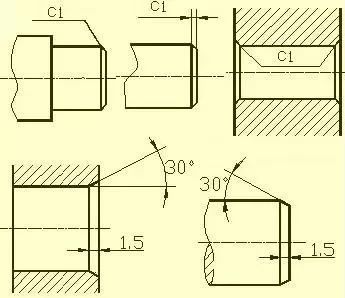常見孔的尺寸注法(盲孔、螺紋孔、沉孔、锪平孔);倒角的尺寸注法。