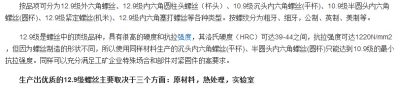 百米小子 發(fā)表于 2016-3-9 08:51 - F" e8 V' c3 ^) N 10.9 其中10是強度1000Mpa 0.9是屈強比 所以屈服強度=1000Mpax0.9=900Mpa