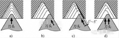 a) 徑向進(jìn)刀 b) 側(cè)向進(jìn)刀 c) 改進(jìn)式側(cè)向進(jìn)刀 d) 左右側(cè)交替進(jìn)刀
