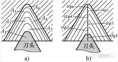 a) 恒切削面積 b) 恒切削深度