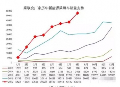 據近日乘聯會公布的8月新能源乘用車數據顯示,在8月份新能源乘用車銷量為52744輛,相比7月份來講增加了73%,環比去年8月增幅為22%,同時也是今年前8月賣出的新能源乘用車最多的一個月。
