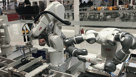 安川機器人的市場最近幾年膨脹的很多,安川首鋼也是眾多汽車廠的合作伙伴,比較其價格比ABB有優勢,我們弧焊全部用的是安川