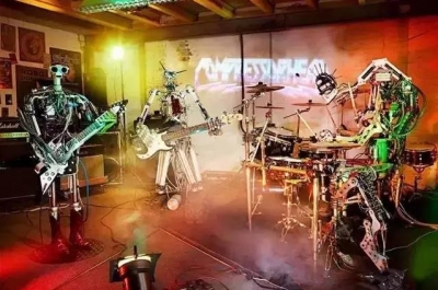 還是有錢人會玩兒,馬云組織了一個樂隊,因為這個樂隊全是由機器人組成的。