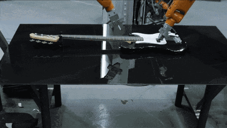 其實這樣的科技樂隊,新西蘭的音樂家Nigel Stanford,就用工廠里的機械手臂,搞了一支樂隊。這些機器人不再搬運和電焊。搞起了音樂也是666!