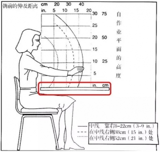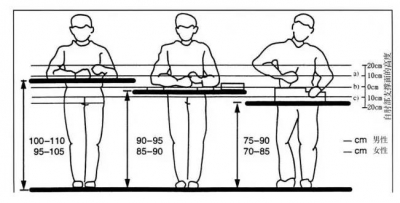 立姿作業,相對于肘部所在平面高度,工作臺面要低5~10cm