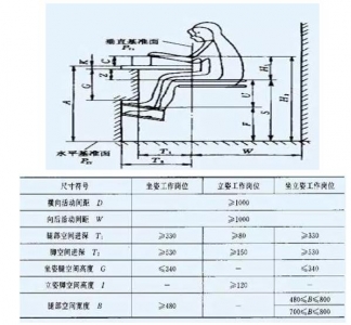 對于坐著,站著,所需的工作空間是有差異的,如坐姿的空間一般要大于12個立方,站著要大于15個立方,對于重體力活的,要更大些,如超過18個立方。