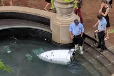 ▲美國一安保機器人沖到了噴泉池中▲
