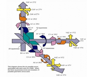 大理石平臺,核心在大理石精度(其中大理石質(zhì)量等級尤為重要)、直線電機機器控制技術(shù)、平臺裝配技術(shù)。在要求高的場合,對大理石的材質(zhì)要求比較嚴(yán)格,目前了解到的國內(nèi)較好的大理石產(chǎn)自山東濟南。大理石需在恒溫環(huán)境加工,在恒溫環(huán)境裝配,在恒溫環(huán)境使用,精度方能達到最佳。直線電機國內(nèi)很多廠家都在制作,但關(guān)鍵技術(shù)還在控制器。似乎關(guān)乎運動控制的技術(shù)國內(nèi)還是不夠強大。裝配技術(shù),大家應(yīng)該都比較熟悉了,導(dǎo)軌水平直線度、垂直直線度、平行度、垂直度等,數(shù)起來有21個空間誤差(如果我沒記錯的話),每個軸有6項誤差(線性誤差、水平直線度、垂直直線度、俯仰角誤差Pitch、滾擺角誤差Roll、偏擺角誤差Yaw);三個軸共18項,加上三個垂直度,一共有21項誤差。實際應(yīng)用中不會考量所有空間誤差。