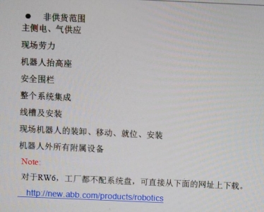 - t3 N" ?9 K& f$ r6 h8 X9 r 在前期談技術協議階段,因為ABB地軌付款方式與交貨周期不合理,當時采購也大愿意買ABB,但與電氣工程交流時,因為電氣擔心機器人用ABB,地軌用其他品牌,后期調試電氣工程怕搞不定!但萬萬沒有想到,更坑的是在安裝調試階段!8 c9 A% h9 s0 Y3 ~1 ~