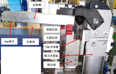 我們公司的強力夾緊單元設計結構標準:限位塊要求為火紅色;壓緊塊材質要求H62;工裝中三向調節X、Y、Z軸的,墊片厚度一律為3mm;壓緊臂結構設計要求寬度最小20mm,高度最小30mm,而且夾緊臂長度也不是隨意設計的!