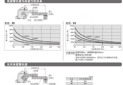 我們公司以SMC的強力夾緊缸為選型標準,常用缸徑為50、63: