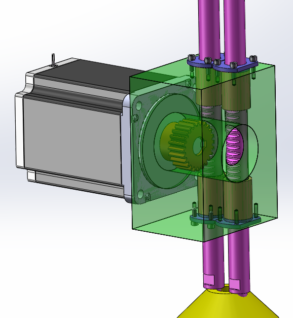 正文摘要:如圖所示,電機及其安裝座是固定在機架上的,通過齒輪驅動圓齒條上下運動,圓齒條有導向的無油襯套,兩個圓齒條防止轉動。 大俠們看看還有沒有其它更簡單合理的結構,謝謝?。? ... |