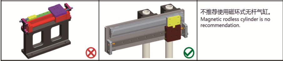 | 磁環無桿氣缸一定要浮動連接!一定要浮動連接!一定要浮動連接! |
