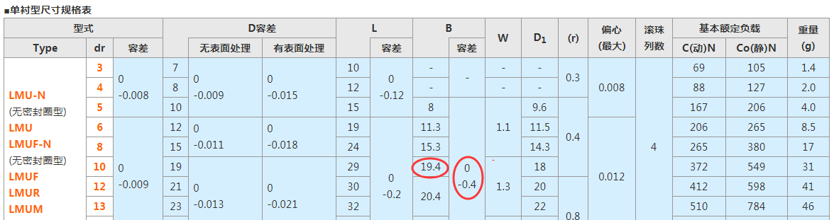 樓主,你應(yīng)該先學(xué)習(xí)一下那個W尺寸的槽,為什么是1.3,就會明白B為什么是這么蹩腳的19.4,然后就會明白這個樣本的標(biāo)注法本身就是錯誤的。 然后你就會明白該設(shè)計(jì)多厚的板子去固定這個了。 板子厚度的精度?你想想看想往這個板子的眼兒里插進(jìn)去的東西是干什么的。 幾乎沒有軸向受力才對。 為什么只能說是幾乎而不是完全沒有?自己用手推一推拉一拉就知道了。內(nèi)部結(jié)構(gòu)決定的。 光軸偏粗了,都可以當(dāng)單向滑溜、單向無牙絲桿用了。 順便問一下樓主:一般的軸用擋圈,軸徑19~23上面用的,厚度是多少? ![]() |