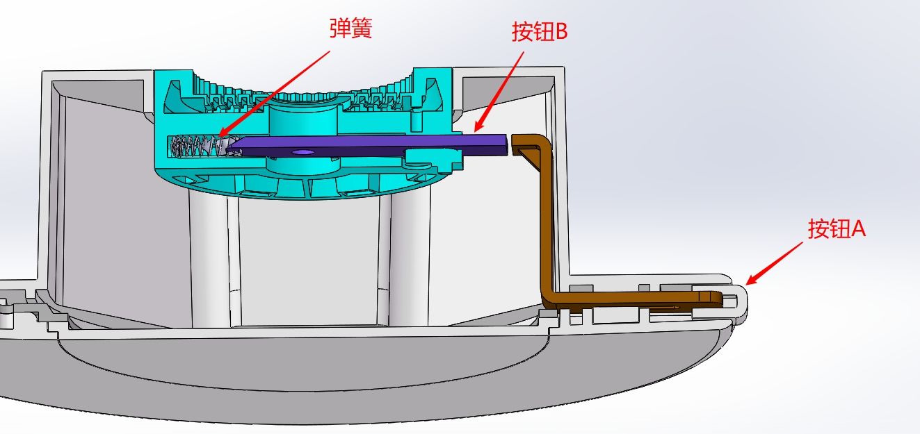 | 按鈕B的位置需要增加一個彈簧,輔助支撐的作用。 |