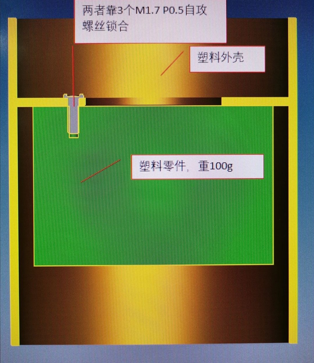 正文摘要:本帖最后由 NEC 于 2020-3-11 15:00 編輯 如圖,請(qǐng)問(wèn)自攻牙螺絲的承重力怎樣計(jì)算?要保證零件從2米處跌落不會(huì)出現(xiàn)問(wèn)題 |