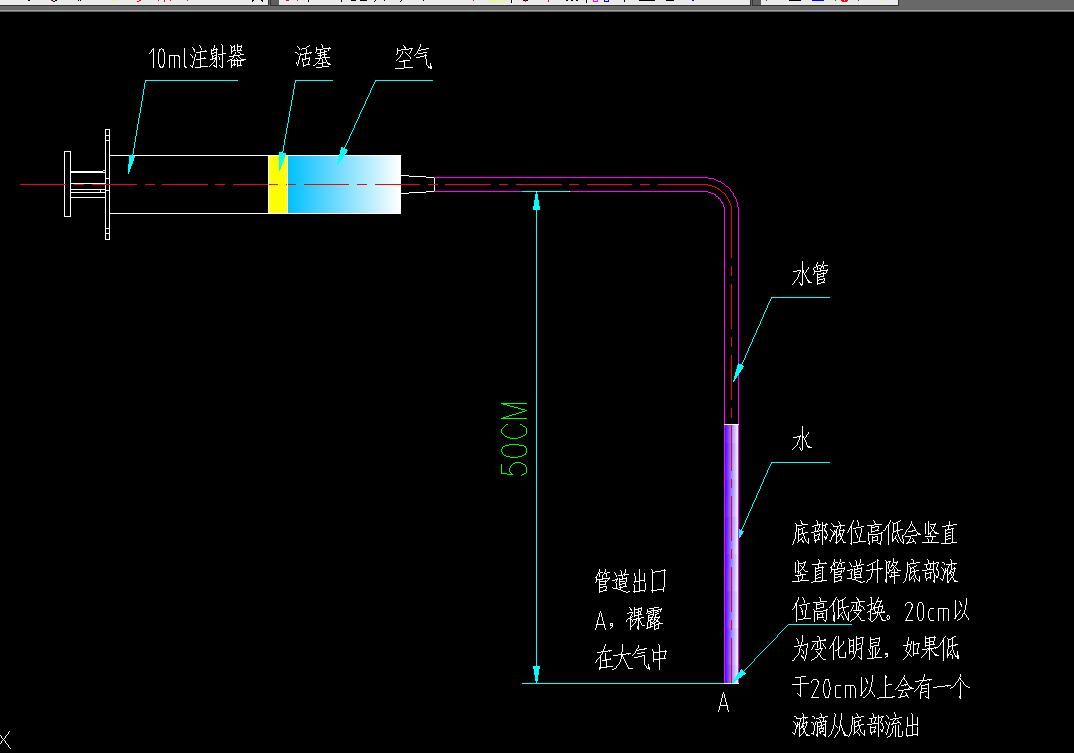 正文摘要:求助:當用10ml注射器連接外徑4mm,內徑2mm的特氟龍管道,注射器和管道連接處用壓縮空氣打壓測試保證密封無泄漏。管道底部的液體會隨著管道上下移動,管道內的液體也會相應的高低變換。如果把管道低于原來高度20cm以 ... |