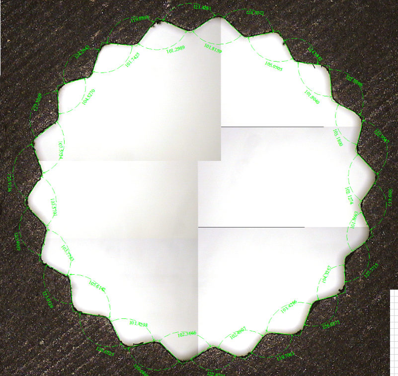 正文摘要:遇到一個軸股配合件,花鍵配合,花鍵軸直徑約10mm,有磨損,尺寸不準; 輪子材料是硬質合金的,線切割加工的,從2.5次元測得角度尺寸如圖,峰角度平均123°,谷角度平均102°; 請教各位大神,這是標準的花鍵嗎? ... |