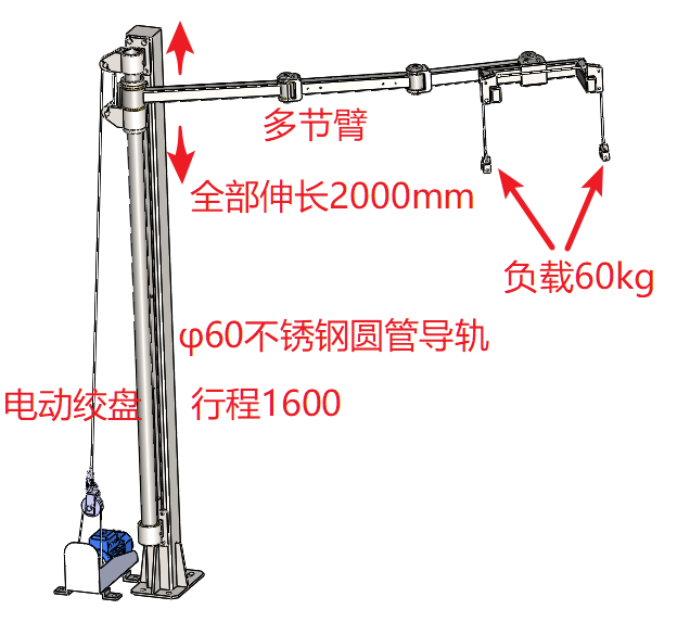 正文摘要:附圖是設(shè)計(jì)的一個(gè)用電動(dòng)絞盤提供升降動(dòng)力,用不銹鋼圓管加自制內(nèi)嵌銅套滑塊導(dǎo)向的多節(jié)吊臂。現(xiàn)在感覺工作臂完全展開后2m長(zhǎng),負(fù)載有60kg左右,這樣滑塊銅套和導(dǎo)軌接觸面承受的彎矩會(huì)很大,摩擦力應(yīng)該也會(huì)很大。請(qǐng)問怎 ... |