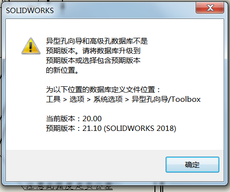 | 你重裝的時(shí)候,讓你選用原來(lái)的toolbox,還是重新指定位置,你肯定沒(méi)管。提示信息已經(jīng)告訴你了,工具>選項(xiàng)>系統(tǒng)選項(xiàng)>異形孔向?qū)?Toolbox選擇Toolbox的路徑 |