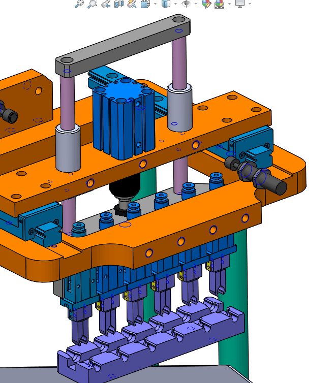 看著應該是純氣動機構。。。 我覺得,少了那么一樣東西:彈簧(壓簧)。。。 升降的速度不一致,加減速不一致,加上負載的重心不在氣缸的軸線附近。。。 應該不用多久,電磁閥那里會開始一直能聽見漏氣的聲音。 另外,那兩個導軌的安裝位槽。。。羨慕你有這么工匠心滿滿的供應商。 那六個氣動手指,一共多少錢啊?真羨慕你們花錢的那勁兒。。。 |