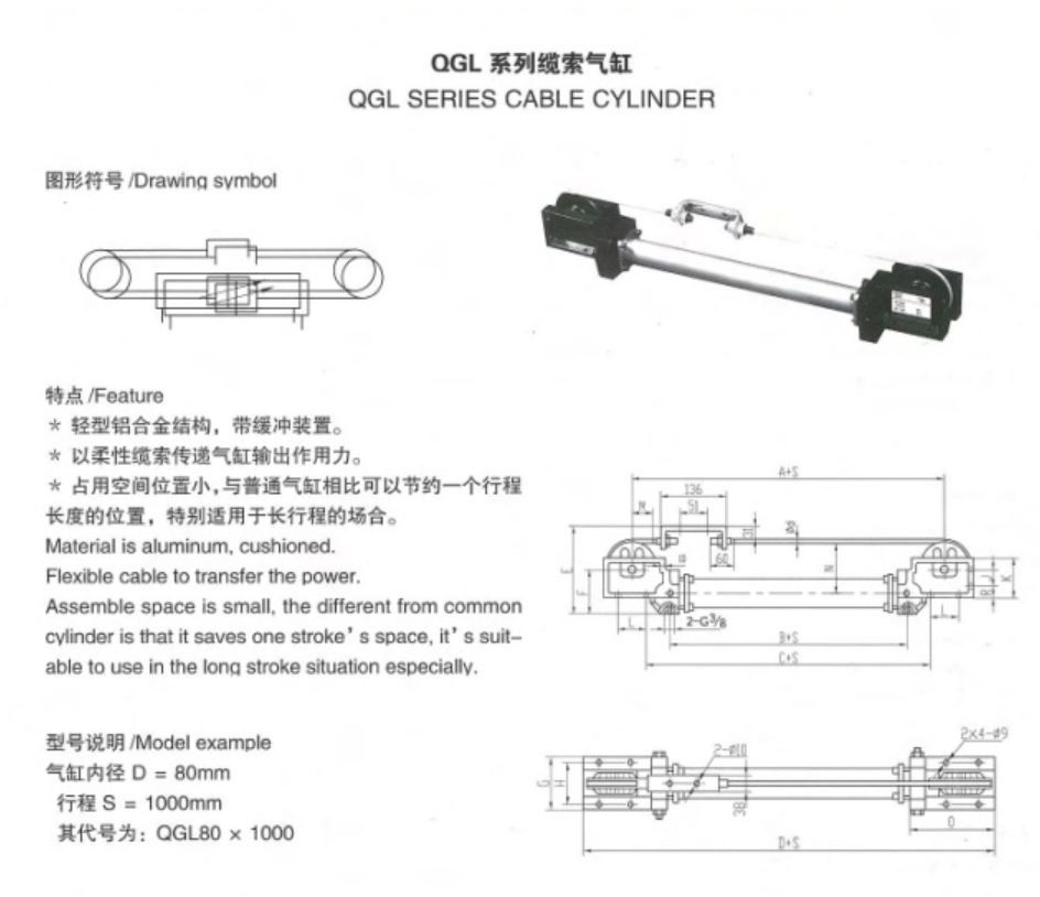 | 工作時沒有伸出的桿,相當(dāng)于把普通氣缸伸出時的氣缸桿這部分省掉了,但是兩頭的導(dǎo)輪附件占了不少位置,所以多用于需要大行程的工位。 |