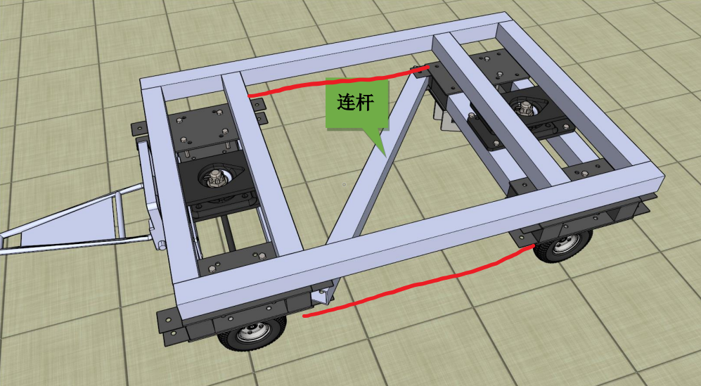 | 個人見解:你這結構很難保證前后輪定位(直線行駛時四個輪子平行情況),直線行駛時四輪不平行速度一快自然擺動(行走時這結構很難保證不產生輕微擺動),個人感覺還是后輪不要轉動連桿去掉 |