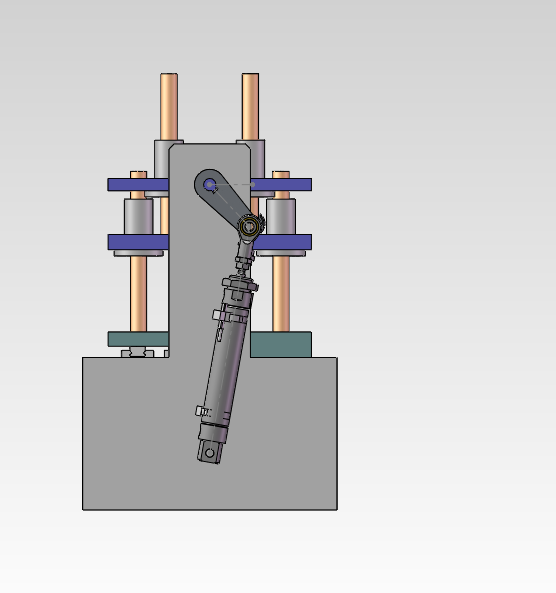 @lanhaibo9 先說(shuō)點(diǎn)不一定是無(wú)關(guān)緊要的話。 機(jī)械零件的命名,沒(méi)有標(biāo)準(zhǔn),但多少有些約定俗成方法。你在這個(gè)設(shè)計(jì)稱呼為“連桿”的零件,似乎稱之為“搖桿”或者“搖臂”、“旋臂'要容易讓人領(lǐng)會(huì)其功能一些。 你需要做的是個(gè)扭矩計(jì)算。 氣缸推動(dòng)搖桿使物體擺動(dòng)。 擺動(dòng)物給出的扭矩,為其重心到搖桿軸心距離的水平投影與運(yùn)動(dòng)部件的乘積。 氣缸的出力軸線與搖桿軸心的距離與氣缸出力的乘積為氣缸能夠給出的扭矩。 氣缸所給扭矩必須大于運(yùn)動(dòng)部件扭矩,部件才能被推動(dòng)。 在5樓給的圖片顯示了機(jī)構(gòu)最大負(fù)荷的工作位置。此時(shí)運(yùn)動(dòng)部件的重心離開(kāi)搖桿軸心距離為50毫米,給出的扭矩為1500公斤*毫米。 不過(guò)你在24樓說(shuō)了擺動(dòng)的部件里還有器件運(yùn)動(dòng),運(yùn)動(dòng)部件的重心要有變化,給出的扭矩也相應(yīng)會(huì)有變化。 在所給結(jié)構(gòu)里,氣缸的出力軸線與搖桿軸心的距離肯定小于57*0.707,姑且定為35吧。 那么,氣缸出力必須大于1500/35=52.5(公斤)。 你準(zhǔn)備用多大的氣壓,多大缸徑的氣缸給出這個(gè)力? 你現(xiàn)在畫出的氣缸能做到嗎? |