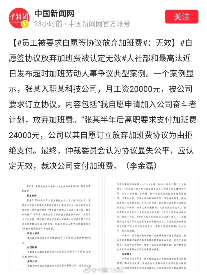 正文摘要:自愿放棄加班費的聲明屬于無效!以后只要加班,就得有加班費,企業必須得給,你不要都不行,如果企業不給,你記得留好證據,以后離職的話可以算算總賬。9 M. F2 H- w1 d" z & M7 a" @8 D! O8 g R$ j # ... |