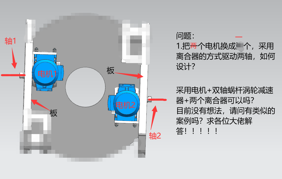 如何使一個電機,用離合器,驅動兩根斜向對立的輸出軸?