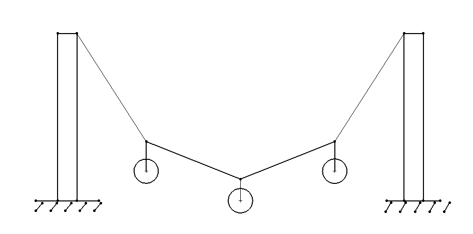如果三個點在繩上無約束,自由移動的,只能在中間平衡。 如果三個點可以在繩上任意點固定,三點任意位置可平衡。 |