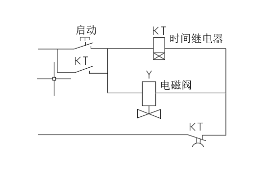 | 實現啟動按鈕“點動”電磁閥動作。動作時長由繼電器設定 |