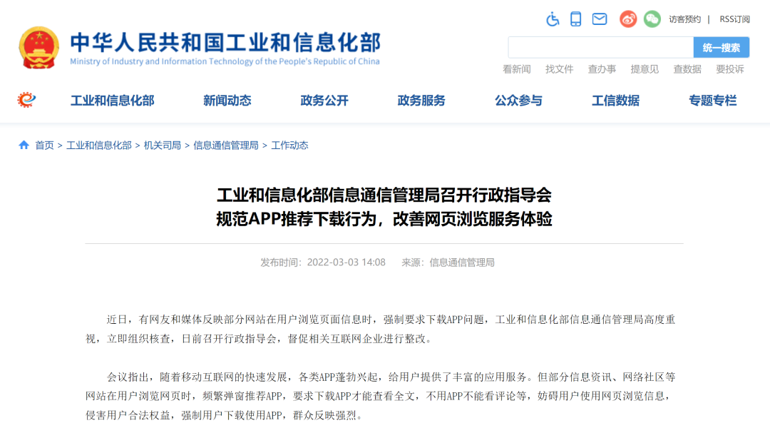 正文摘要:工信部:互聯網企業未經用戶同意或主動選擇,不得自動或強制下載App 近日,工信部信息通信管理局召開行政指導會。會議要求,在用戶瀏覽頁面內容時,一是未經用戶同意或主動選擇,不得自動或強制下載App;推薦下載App ... |