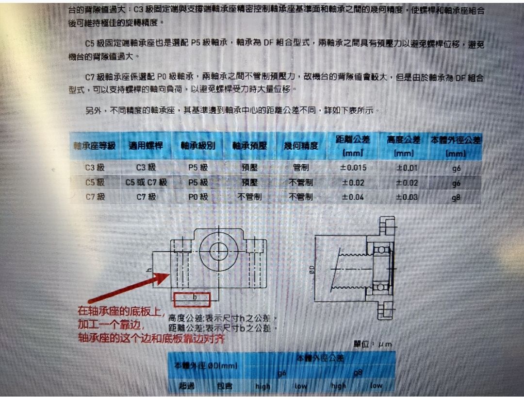 三腳貓 發(fā)表于 2022-10-14 10:09 我看上銀和THK上面的軸承座都標(biāo)準(zhǔn)了中心孔到側(cè)邊的位置公差,大概兩絲左右,應(yīng)該是作為中心孔的定位基準(zhǔn),因此是有加工的。我看到很多評(píng)論都建議不加工靠邊,避免出現(xiàn)無法調(diào)整。我也不打算加工靠邊了。由于公司加工能力限制,沒法在底板上加工銷孔。也非常感謝您的建議 ![]() |