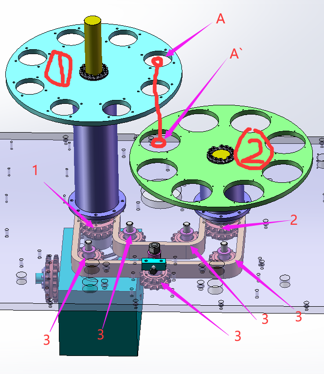 正文摘要:本帖最后由 cgq01 于 2022-12-8 19:13 編輯 大家好,本人設計了一個設備,用到一個分割器驅動兩個轉盤,見圖。 分割器直接和轉盤①連接,通過鏈條與轉盤②連接。 每個轉盤有8個工位。 轉盤上工位所在圓直徑400mm ... |