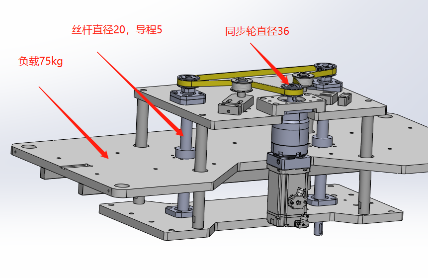 正文摘要:如圖,電機減速機輸出端連接一個同步輪,同步帶動絲桿升降帶動負載,同步輪主從動輪直徑相同,是否可以理解成電機就是帶動的絲桿在做垂直升降運動,如果這種機構要計算扭矩,慣量是否匹配,應該如何計算,計算哪些參 ... |