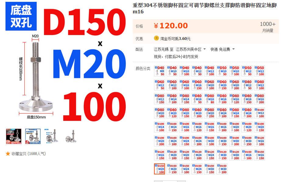 正文摘要:一臺設備總重約2噸,1噸=1000Kg;設備底座長約3米,寬約2米,底座專門焊接20mm鋼板,打算用六個腳杯。 本人考慮 腳杯的盤徑要大,看怡合達上腳杯的盤徑小,去淘寶選了一款盤徑150mm(附圖 不銹鋼材質)。 廠家跟我說 ... |
